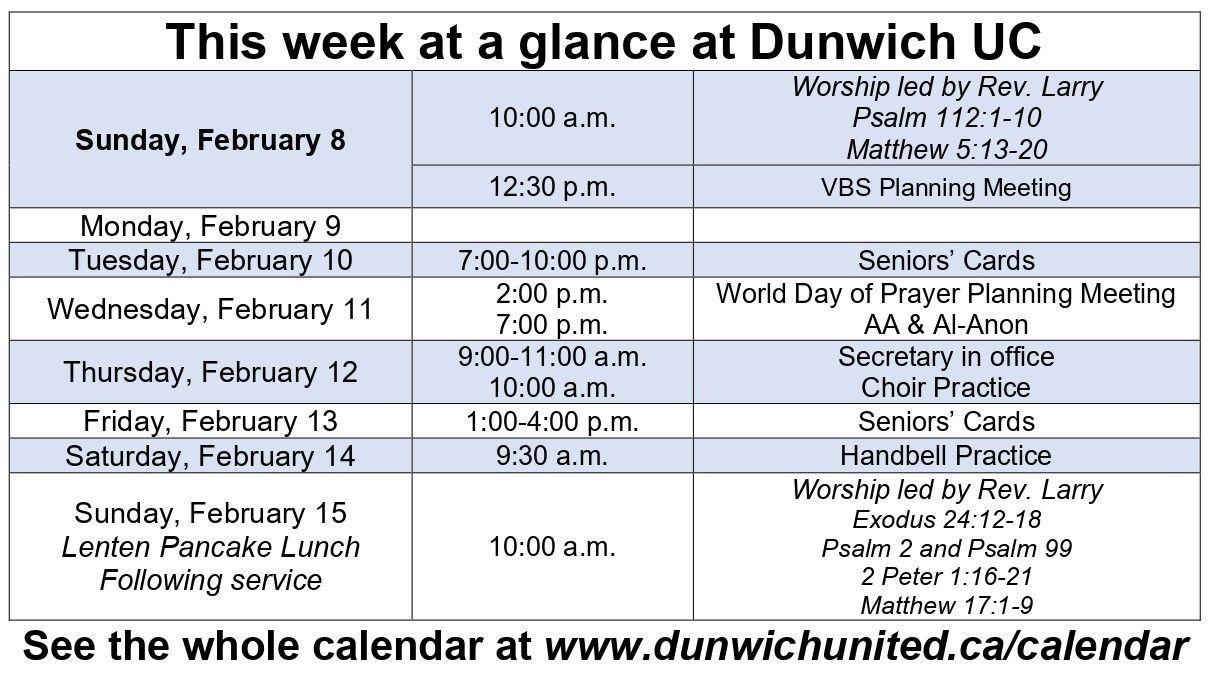 DUC welcomed new members by transfer on February 18. From left: Marg Varga, Bill Graham, Gwen Schneider, Chair of Congregation Tony Cooper, Darlene Towers, Rev. Larry Schneider, Doug Staddon, Dorothy Staddon, Rosanne Murray.