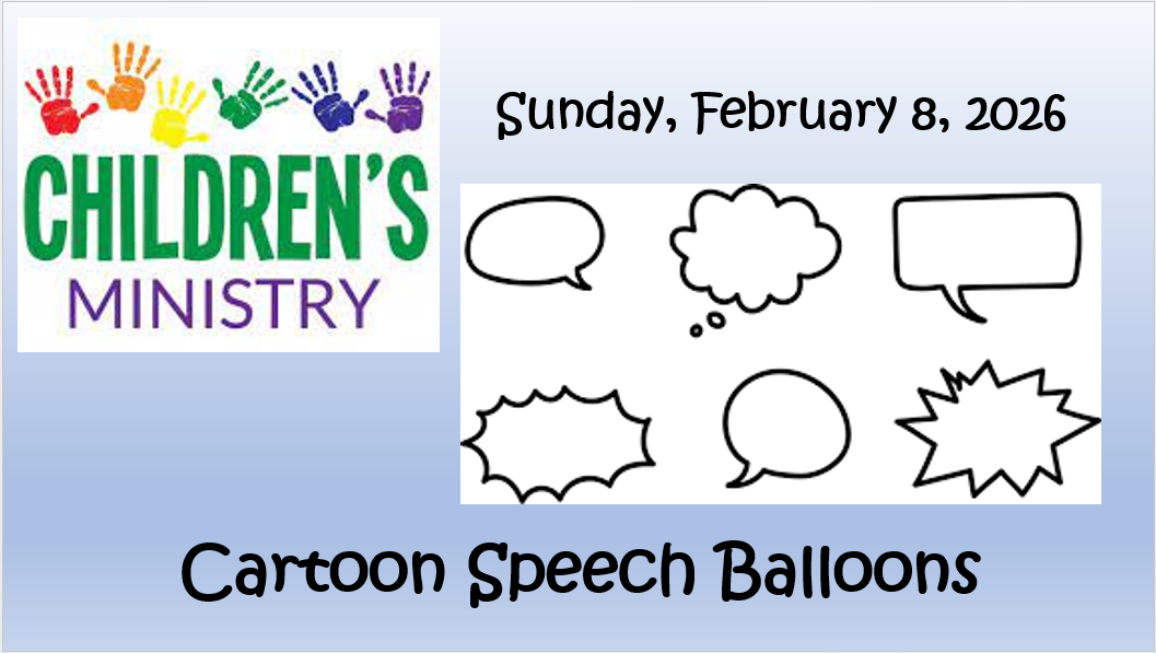 Rev. Larry invited children, young and older, to the front to help draw some speech balloons.